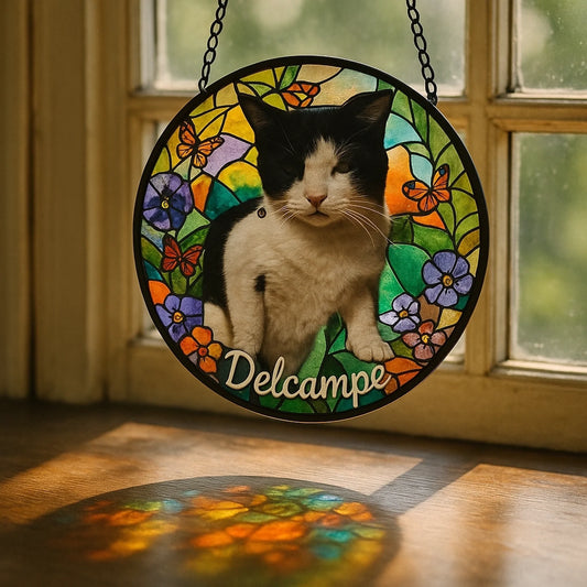 Pendentif attrape-soleil en vitrail personnalisé – Cadeau pour les propriétaires et les amoureux des animaux