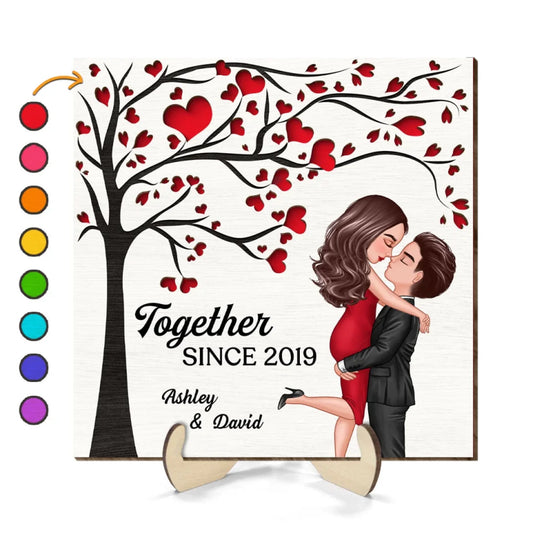 Couple Kissing Under Heart Tree Engraved Personalized 2-layer Wooden Plaque, Valentine‘s Day Gift For Him, For Her