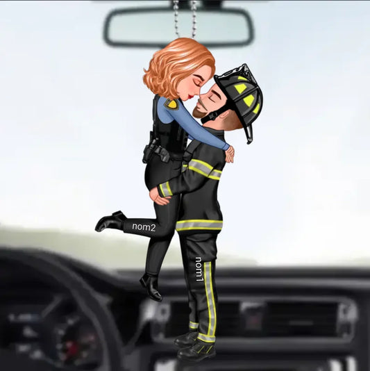 Ornement de voiture personnalisé, portrait de couple, cadeau de Noël, cadeaux par profession