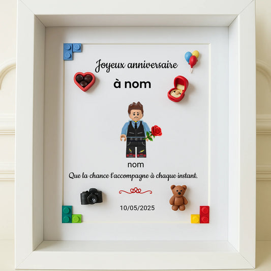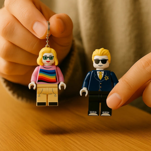 Porte-clés personnalisé en forme de bloc de construction avec portrait