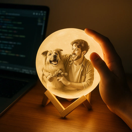 Lampe de nuit en forme de lune imprimée en 3D unique avec photo d'animal personnalisée
